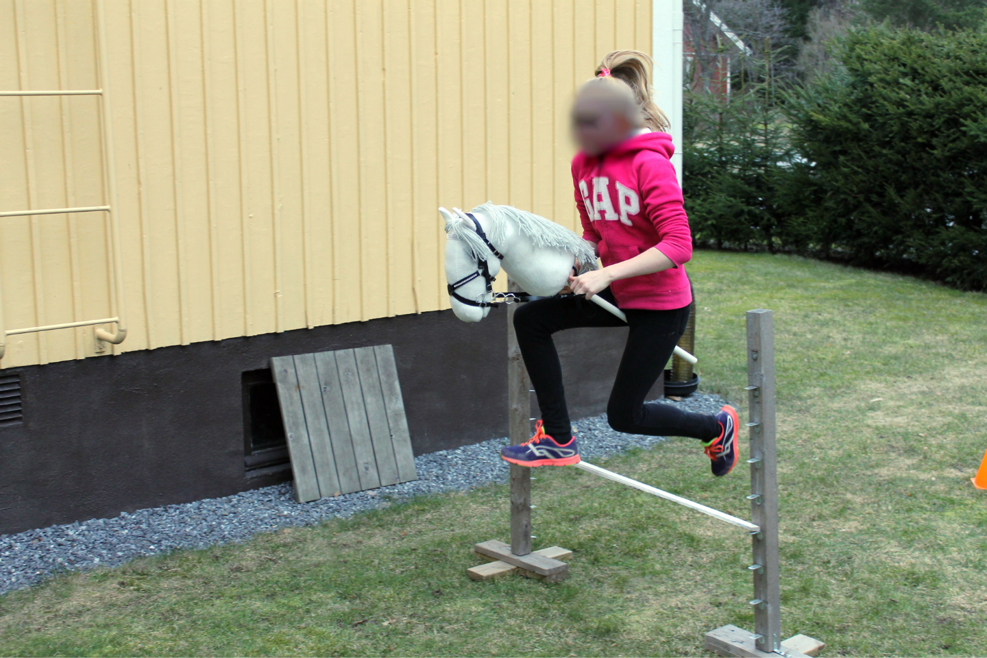 Oho. Innostuin itsekin hakemaan hevosen tallista, kun kerrankin pääsi hyppäämään rataa. Olen todella laiska raahaamaan jokaista estettä kentälle vain itseäni varten, joten tuli tämäkin hyödynnettyä. Otin Hipun, sillä sen liikutuksesta oli kauiten aikaa.